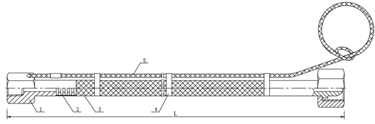 1.软管接头 2.波纹管 3.不锈钢编织网 4.防甩绳固定卡箍 5钢丝防甩绳